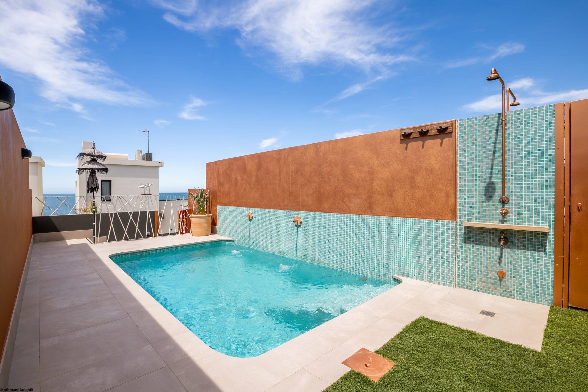 Compuesta de tres dormitorios con baño, salón, aseo, mini-bar, terrazas al mar, piscina privada y aparcamiento. Equipadas con aire acondicionado, calefacción, Smart TV y wifi.